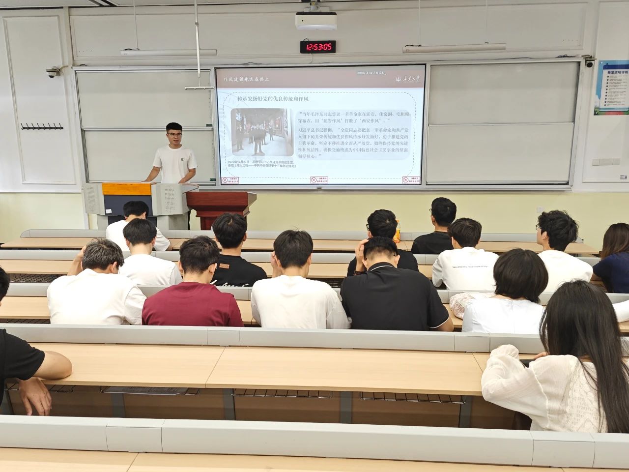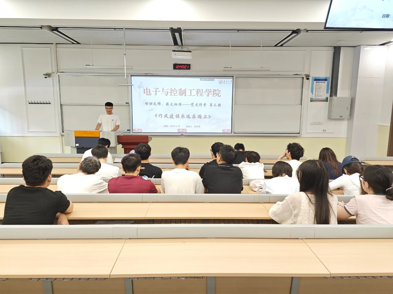 为深入学习贯彻中央八项规定精神,强化党员纪律意识,电控学院2024级研究生第一党支部于2025年5月30日在南校区北院B171教室开展第3期“智控先锋,薪火相传”党史讲堂系列活动。活动由党支部书记张兴浩主讲,支部全体党员参加。