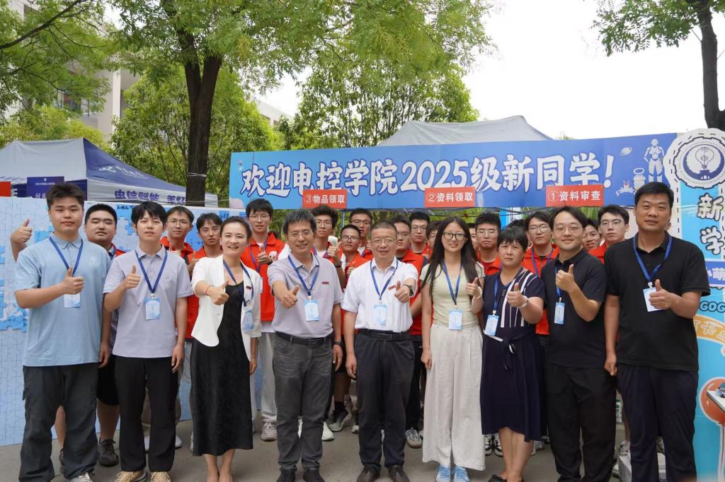 迎新期间,校党委书记陈志坚、校长李树涛等校领导亲临电控学院报到点,详细了解迎新工作开展情况,并与迎新工作人员以及新生们亲切合影。校领导仔细翻阅学院为新生们精心准备的学科竞赛手册,对电控学院在智能控制、机器人等领域的创新成果给予高度评价。“希望同学们以优秀学长为榜样,在电控领域勇攀高峰!”校领导寄语新生时说道。
