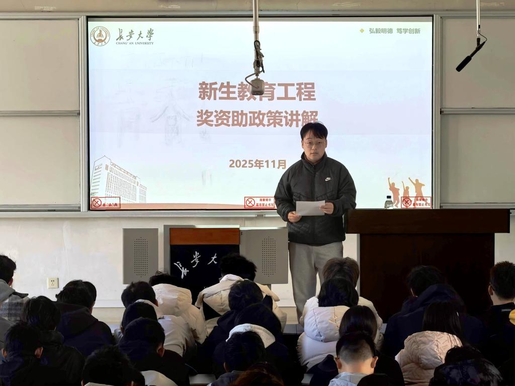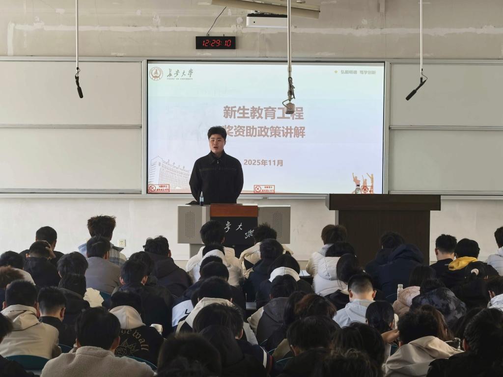 为深入落实新生教育工程,帮助2025级新生全面了解国家及学校各类奖助政策,助力学生安心就学、成长成才,11月18日,电子与控制工程学院在WM1201教室组织开展了2025级新生奖资助政策宣讲主题班会。本次班会由2025级本科生辅导员吴耀东、孙超共同主讲,学院全体2025级本科生参加。