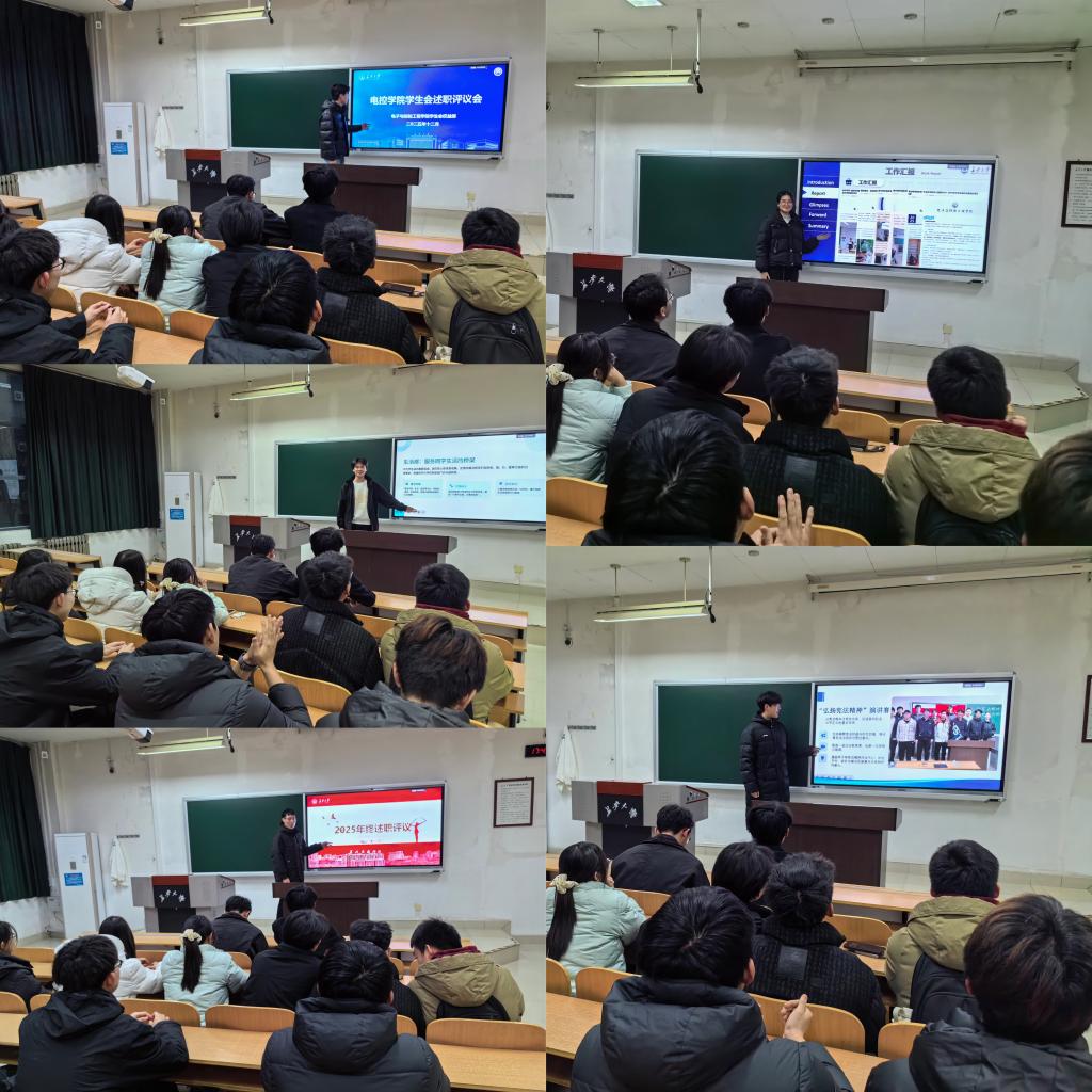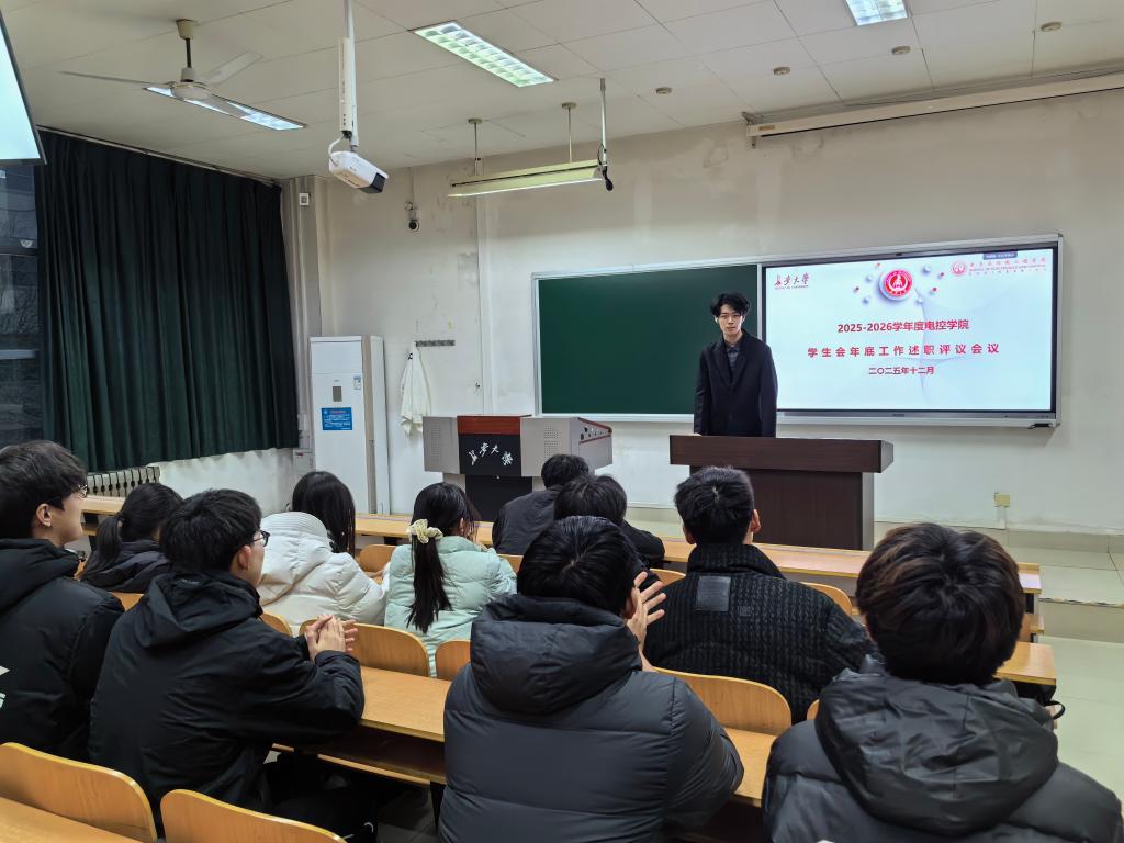 为贯彻落实高校学生会深化改革部署要求,锤炼学生骨干的责任担当、提升服务效能,12月12日晚,电控学院学生会在WM1215教室召开2025-2026学年秋季学期述职评议会。学院团委副书记胡佳瑞、学生会主席团成员出席会议,会议由学生会执行主席张子涵主持。