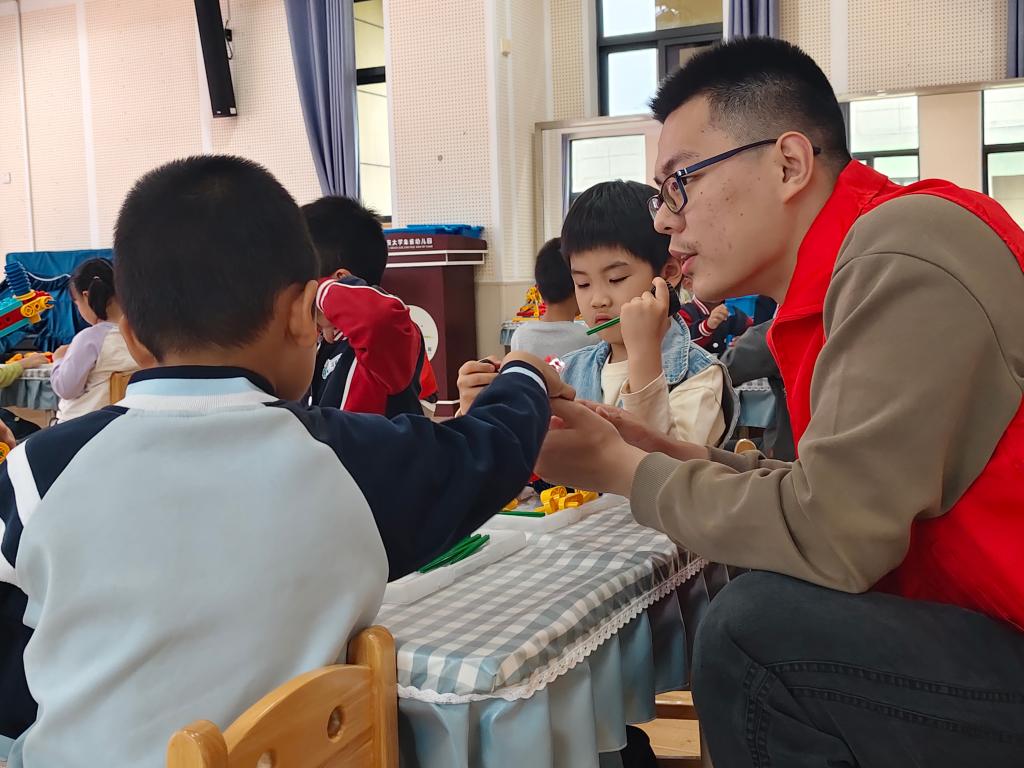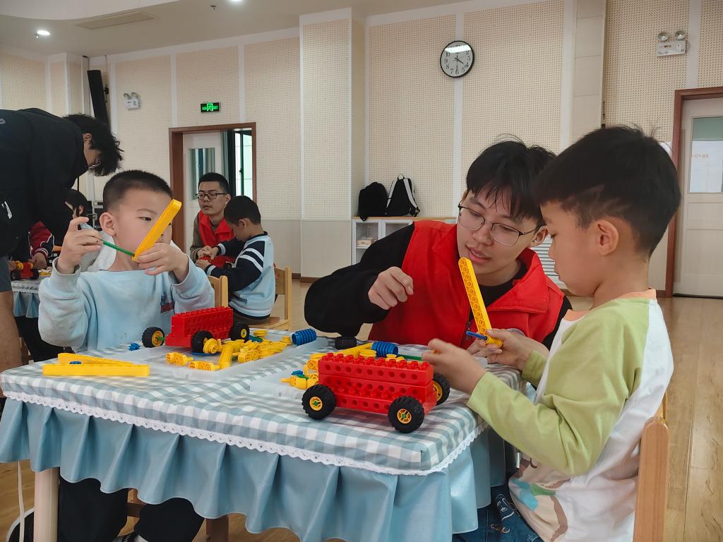4月7日,电控学院各本科生及研究生党支部联合电控科协、机器人俱乐部,走进长安大学朱雀幼儿园,开展“机器人科普进校园”志愿服务系列活动(第24期)。本次课程以“智慧小齿轮——小小杠杆魔法师”为主题,张佩奇、张云龙、陈祎臻等志愿者与幼儿园教师共同参与授课,带领大班孩子们在积木搭建中解锁杠杆奥秘,感受科学与实践的乐趣。