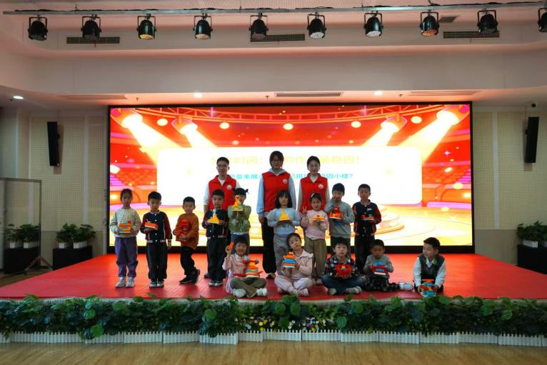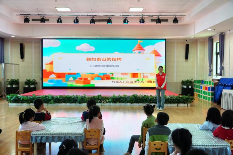 动手实践环节,小朋友们运用所学技巧自主搭建稳固小楼。志愿者全程耐心指导、细心陪伴,鼓励孩子们轻推作品检验稳定性。