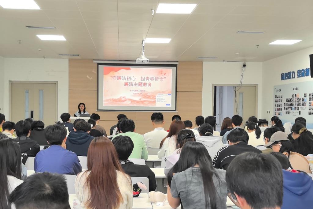 4月14日,电控学院在北校区明德园智通大厦216室召开“守廉洁初心 担青春使命”廉洁主题教育大会暨树立和践行正确政绩观主题团课。学院团委书记李慧担任主讲,2025级本科生辅导员孙超,学院各团学组织学生骨干、团员代表参会学习。