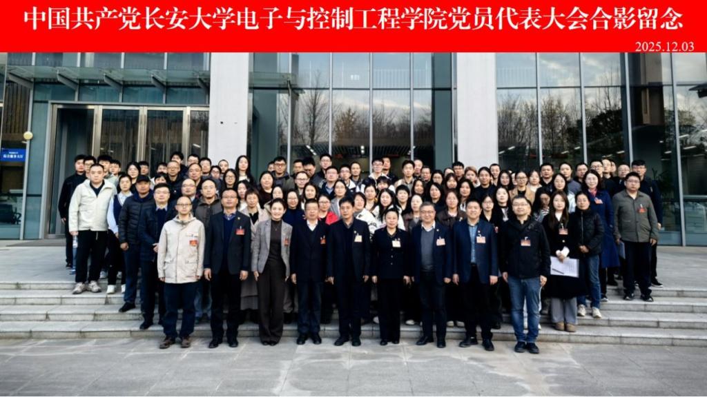 2025年12月3日,中国共产党长安大学电子与控制工程学院党员代表大会在北校区师生服务大厅第二报告厅隆重召开。学校指导组第六指导组组长、巡察办主任李武尚同志、指导组成员监察处秘书田弘长同志莅临大会指导,会议由闫茂德同志主持。本次大会共有正式代表120名,实到代表112名。