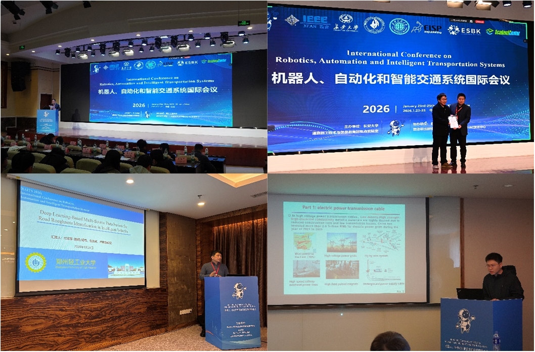 2026年1月23-25日,由长安大学、道路施工技术与装备教育部重点实验室主办,西安工程大学、AC学术中心协办的机器人、自动化与智能交通系统国际会议(RAITS 2026)在西安成功举办。会议聚焦机器人技术、自动化工程与智能交通系统的前沿发展,共设立主旨报告、特邀报告及多场专题分论坛,吸引了广泛专家学者参加。