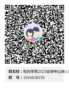 请2025级有意向转入我院学习的同学加入电控学院2025级转专业转入群,加入群时,请备注---现就读学院、学号、姓名。